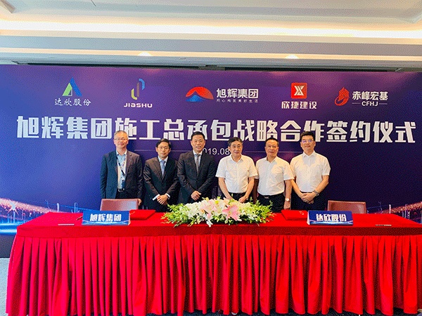 在旭輝集團(tuán)執(zhí)行總裁陳東彪先生與達(dá)欣集團(tuán)董事長(zhǎng)馬和軍先生的共同見證下,旭輝集團(tuán)運(yùn)營(yíng)中心總經(jīng)理劉峰與達(dá)欣集團(tuán)黨委書記劉厚純代表雙方簽約施工總承包戰(zhàn)略合作協(xié)議。