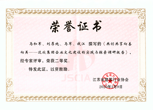 在企業(yè)文化理念和制度引導下,全體達欣人將積極弘揚企業(yè)文化傳承,將達欣優(yōu)秀企業(yè)文化建造在一項項精品工程中,在全國各地施工項目中繼續(xù)展示良好的企業(yè)形象,唱響“達欣”品牌,助推企業(yè)高質量發(fā)展。