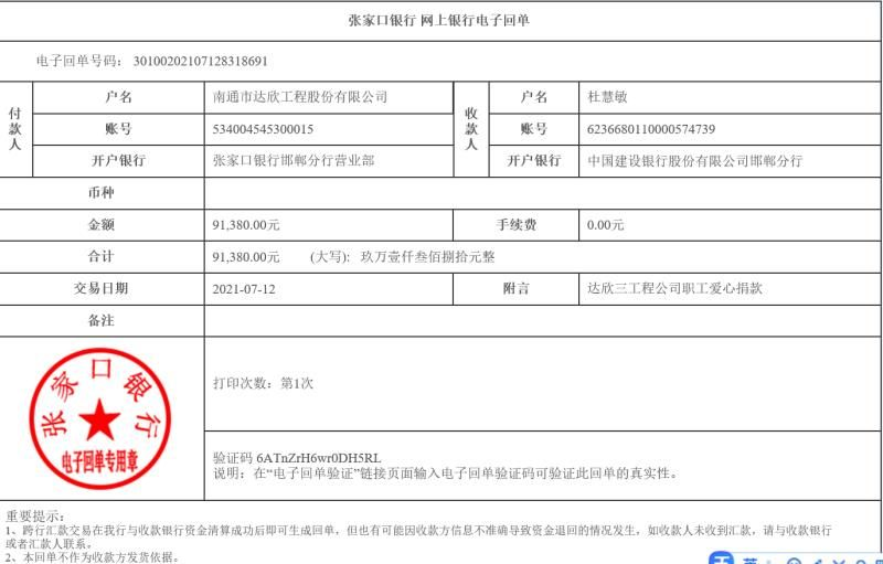 同事們在得知情況后,紛紛伸出援手,獻(xiàn)出一份愛和情誼,在大家的共同努力下,共籌到善款91380元,并于第一時間匯到杜慧敏賬戶里。希望她能盡快走出病痛的折磨,早日康復(fù)!