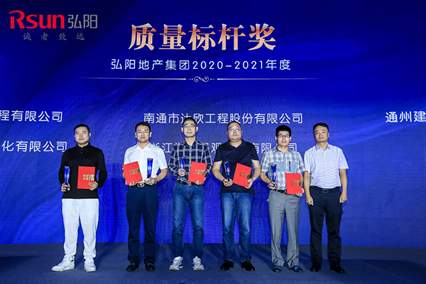 會(huì)上,弘陽集團(tuán)公布了2020-2021年度優(yōu)質(zhì)供應(yīng)商名錄,達(dá)欣集團(tuán)以過硬的鐵軍作風(fēng)、優(yōu)質(zhì)的施工產(chǎn)品、快速貼心的服務(wù)、卓越筑造的品質(zhì),在弘陽2021年度第三方飛檢中位列弘陽地產(chǎn)集團(tuán)第一名、第二名,贏得了弘陽集團(tuán)的高度認(rèn)可,榮獲弘陽地產(chǎn)集團(tuán)“質(zhì)量標(biāo)桿獎(jiǎng)”。