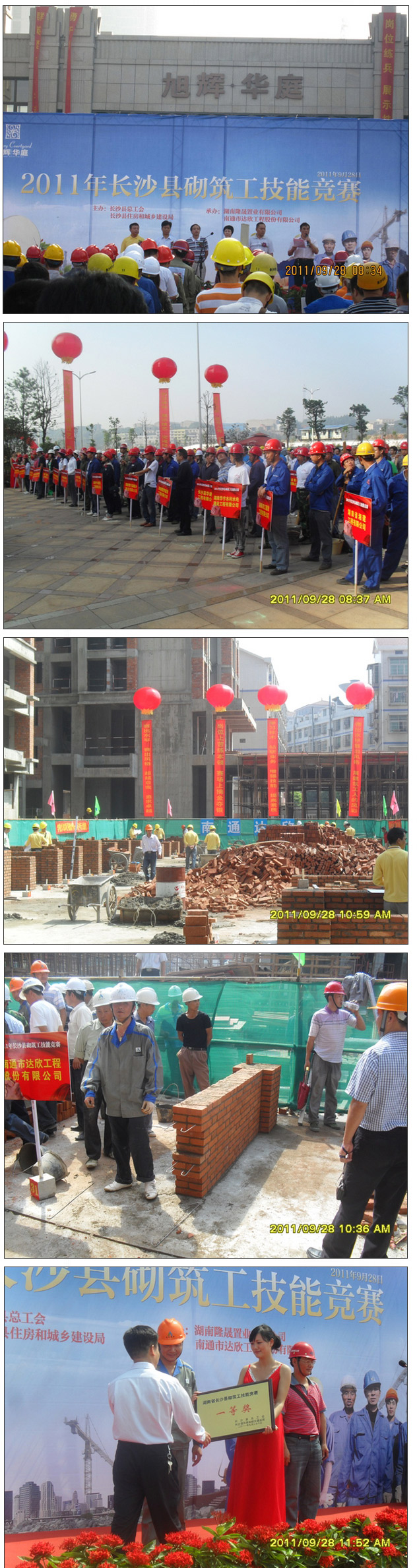 9月28日上午,秋高氣爽、丹桂飄香,由長(zhǎng)沙縣總工會(huì)、長(zhǎng)沙縣住房和城鄉(xiāng)建設(shè)局主辦,湖南隆晟置業(yè)有限公司和我公司承辦的 2011年長(zhǎng)沙縣砌筑工技能競(jìng)賽活動(dòng)圓滿落幕。第一工程公司長(zhǎng)沙旭輝?華庭項(xiàng)目部選手方子星一舉奪冠,榮獲參賽單位集體一等獎(jiǎng)。