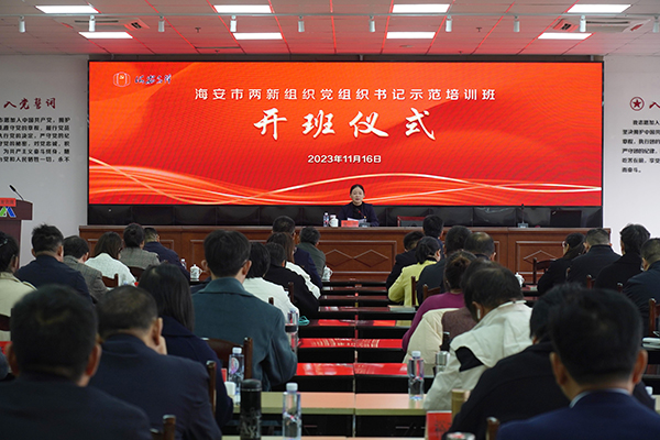 11月16日,全市兩新組織黨組織書記示范培訓(xùn)班開班儀式在達(dá)欣集團(tuán)舉行,海安市委組織部常務(wù)副部長(zhǎng)、“兩新”工委書記、黨建辦主任吳蘭,各區(qū)鎮(zhèn)街道組織委員、培訓(xùn)班全體學(xué)員、高新區(qū)兩新組織黨組織書記代表等100多人出席活動(dòng)。集團(tuán)在海領(lǐng)導(dǎo)馬和軍、杭小建、劉厚純參加活動(dòng)。